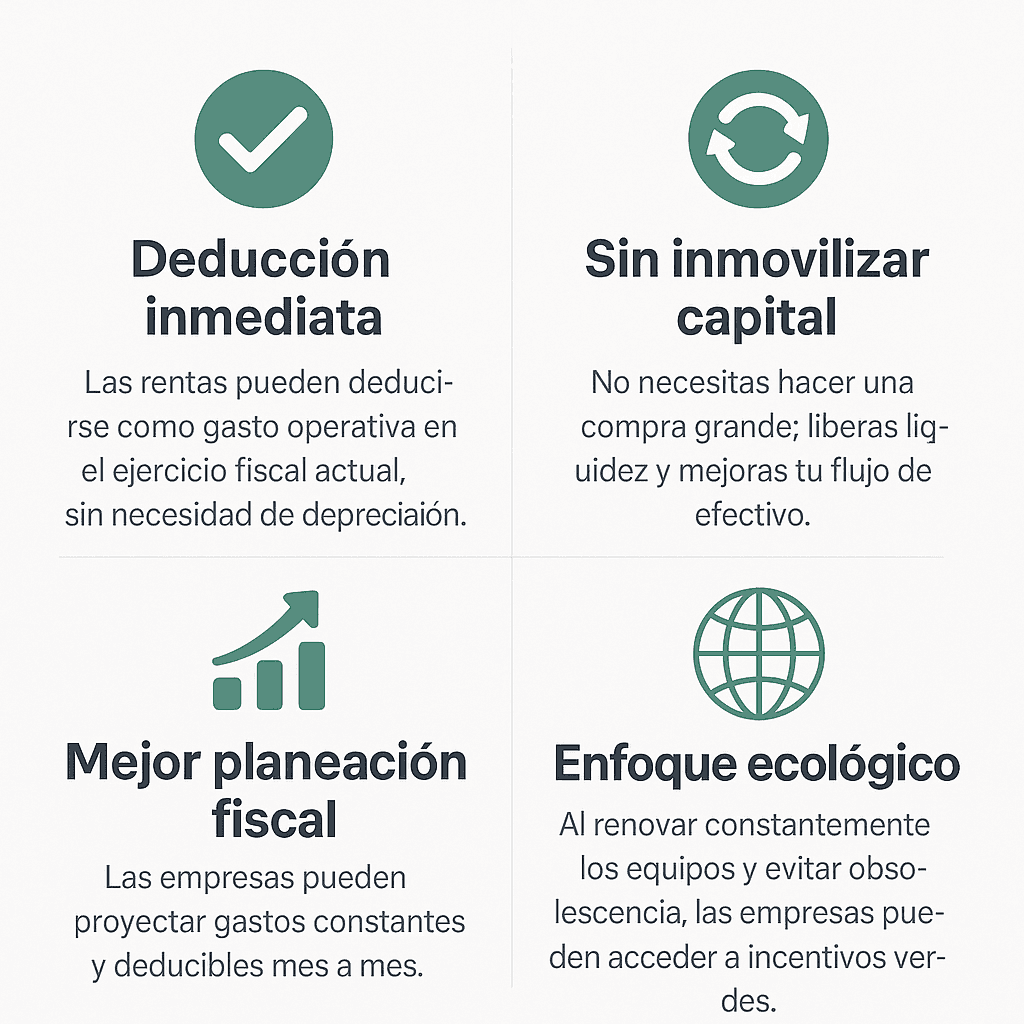 Descubre los beneficios fiscales del renting en 2025 y cómo aprovecharlos para optimizar los gastos tecnológicos de tu empresa en México.