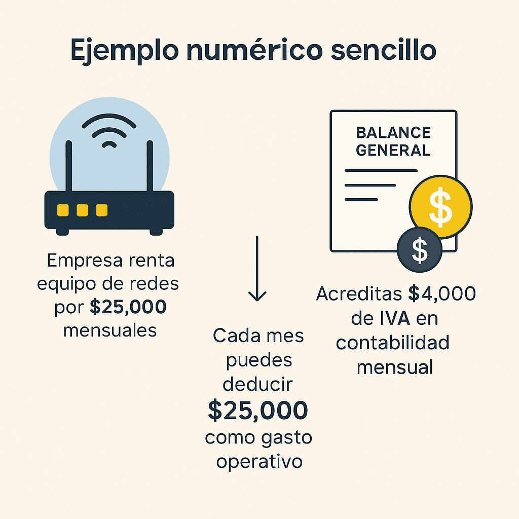 Supongamos que tu empresa renta equipo de redes por $25,000 mensuales + IVA ($4,000).