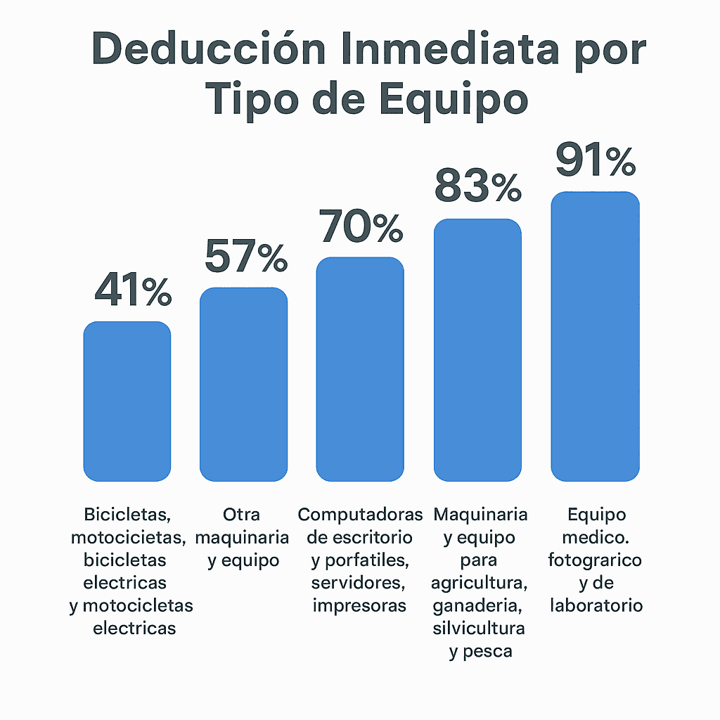 Según análisis de Creel Abogados y Foley & Lardner LLP, los porcentajes de deducción por tipo de equipo pueden oscilar entre el 41% y el 91% dependiendo del sector, del tipo de tecnología arrendada y del giro de la empresa.